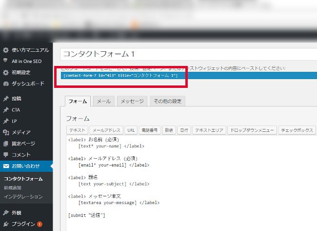 これで、あなたのワードプレスに《Contact Form 7》が導入されたことになります。